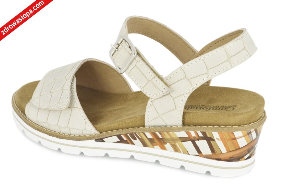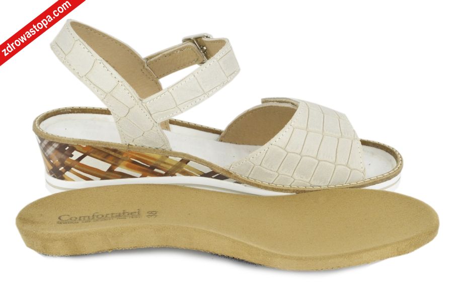 Dodatkowe informacje: Wysokość obcasa: 50mm. Zapinane na rzepę, rzep w palcach pozwala na dopasowanie do stopy. Gruba miękka, wyjmowana wkładka pozwala na wymianę na swoją np. ortopedyczną. Elastyczne i antypoślizgowe podeszwy.