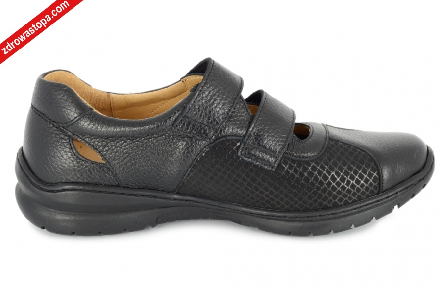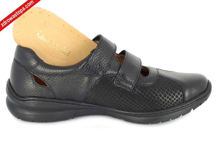 Dodatkowe informacje: Obuwie zapinane na dwie rzepy, wykonane z miękkiej skóry naturalnej a w przedniej części z materiału który nie uciska na wrażliwe miejsca. Bardzo lekkie, posiadające wyjmowaną wkładkę, elastyczne spody i antypoślizgową podeszwę.