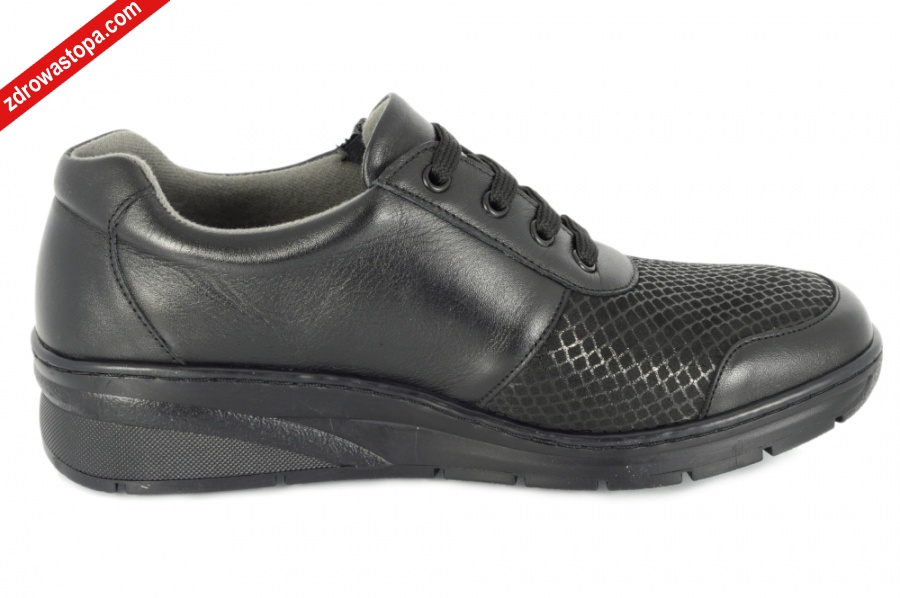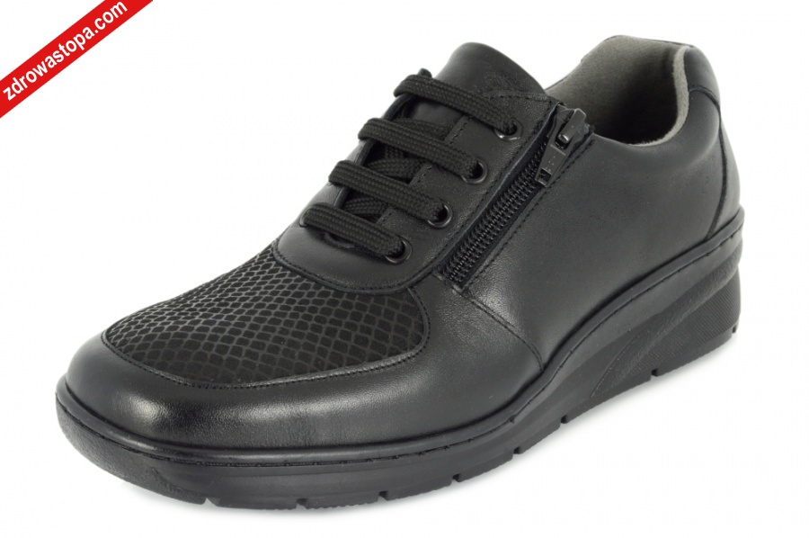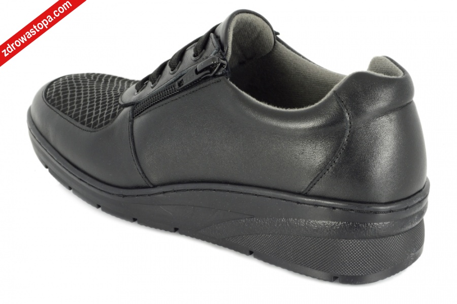 Dodatkowe informacje: Sznurowane, zakładanie ułatwia suwak z boku, bardzo miękka skóra, wyjmowana miękka wkładka, spody antypoślizgowe. W przedniej części zastosowano elastyczny stretch dzięki czemu obuwie dopasowuje się do stóp z problemami.