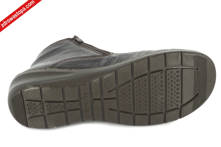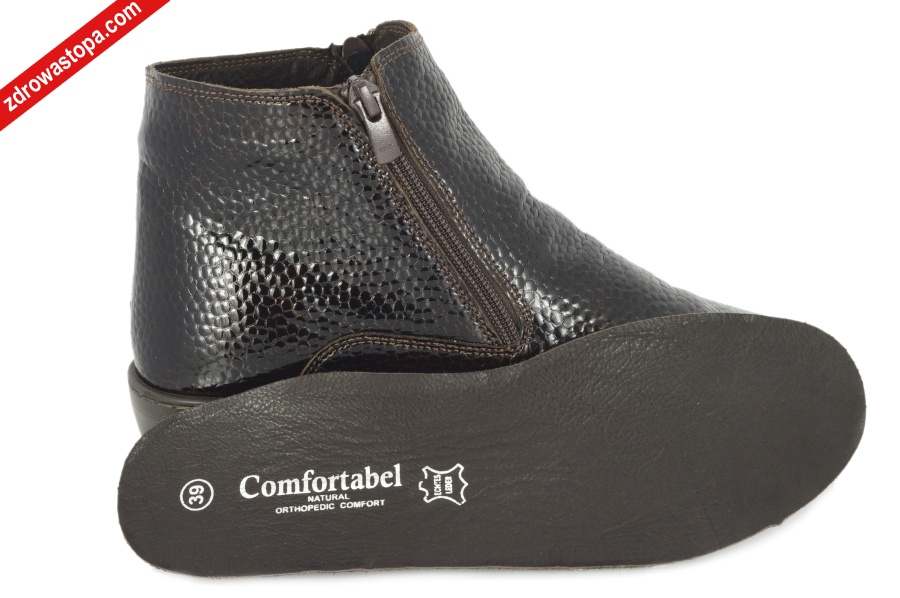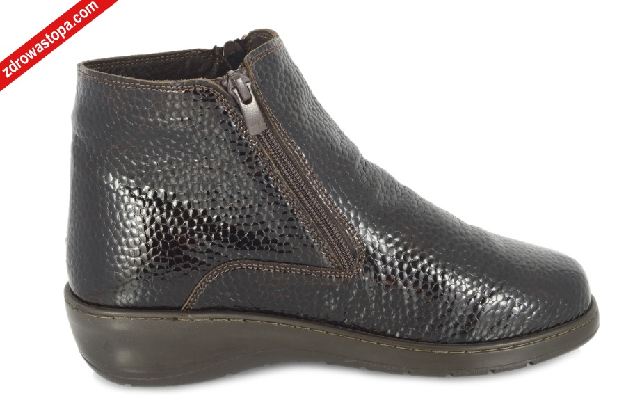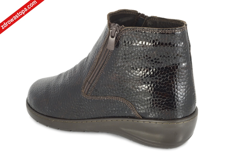 Dodatkowe informacje: Nowoczesny fason, dwa suwaki ułatwiające zakładanie. Wykonane z miękkiej skóry. Elastyczne i antypoślizgowe spody absorbujące drgania, koturn wysokości 40mm. Wnętrze butów wykończone miękkim materiałem, wyjmowana profilowana, skórzana wkładka.