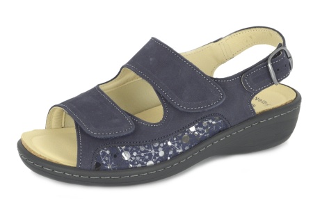 Dodatkowe informacje: wysokość klinu: 35 mm, zapięcie na dwie rzepy na podbiciu. Regulowany pasek na pięcie. Skórzana, wyjmowana wkładka profilowana z punktem na pięcie amortyzującym drgania. Od wewnętrznej strony tkanina streczowa w celu wymiękczenia na ewentualnych haluksach.