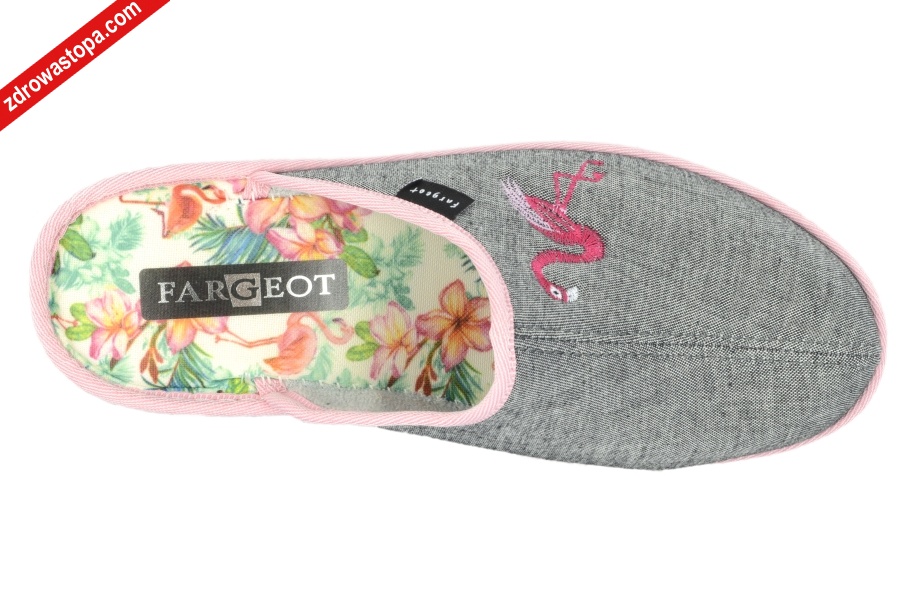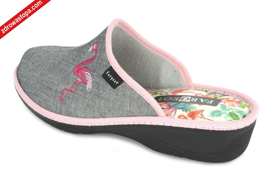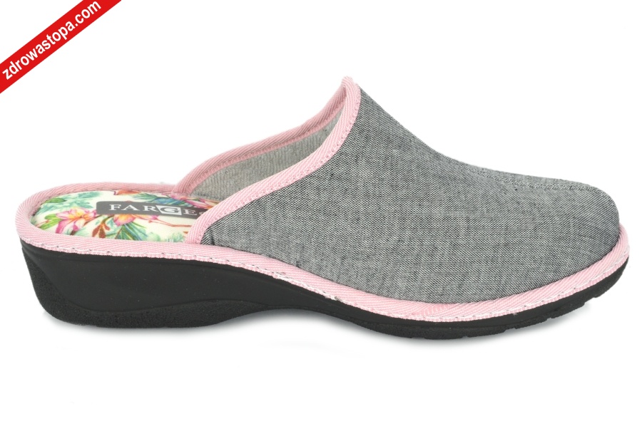 Dodatkowe informacje: Bardzo wygodne kapcie damskie na niewielkim koturenku 35mm. Wkładka bardzo miękka. Nadają się dla stóp problematycznych (haluksy).