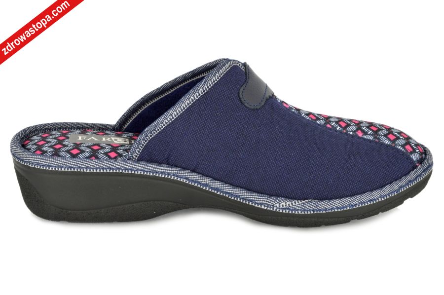 Dodatkowe informacje: Bardzo wygodne kapcie damskie na niewielkim koturenku 35mm. Wkładka bardzo miękka. Nadają się dla stóp problematycznych (haluksy).