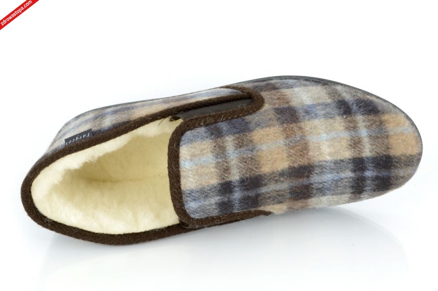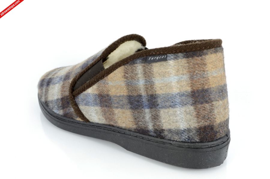 Dodatkowe informacje: wyłożone w środku naturalnym futerkiem, bardzo wygodne i miękkie o poszerzonej tęgości H. Na podbiciu dwie gumki ułatwiające trzymanie stopy.