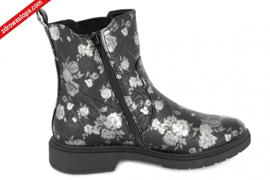 Dodatkowe informacje: Suwak z boku ułatwiający zakładanie, szeroka gumka z boku dopasowuje obuwie do stopy. Środek wykończony cienkim, miękkim materiałem polarowym. Spody elastyczne i antypoślizgowe. Obuwie jest bardzo lekkie.
