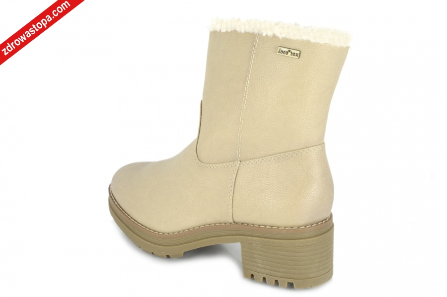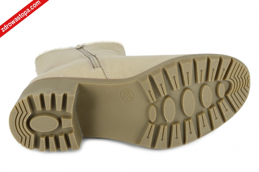 Dodatkowe informacje: Bardzo wygodne w zakładaniu dzięki suwakowi z boku. Środek wykończona miękka wełną, wyjmowana wkładka. Spody elastyczne i antypoślizgowe, wysokość obcasa 55mm. Obuwie jest bardzo lekkie i posiada membranę TEX uniemożliwiającą przemakanie butów