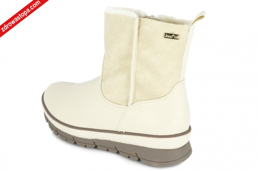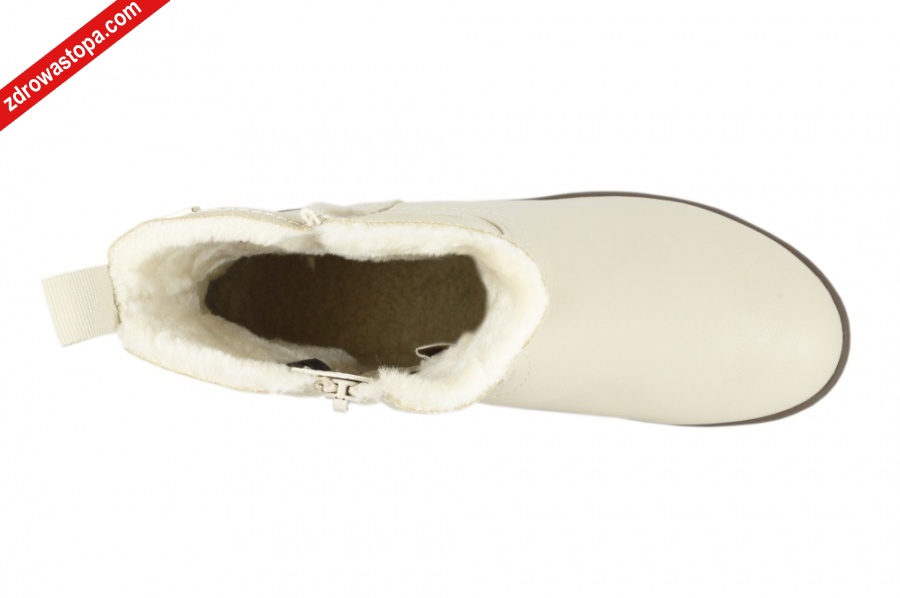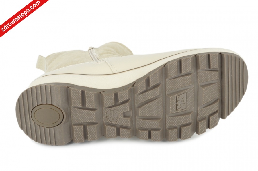 Dodatkowe informacje: Bardzo wygodne w zakładaniu dzięki suwakowi z boku. Środek wykończona miękkim futerkiem, wyjmowana wkładka. Spody elastyczne i antypoślizgowe, wysokość klinu 40mm. Obuwie jest bardzo lekkie i posiada membranę TEX uniemożliwiającą przemakanie butów