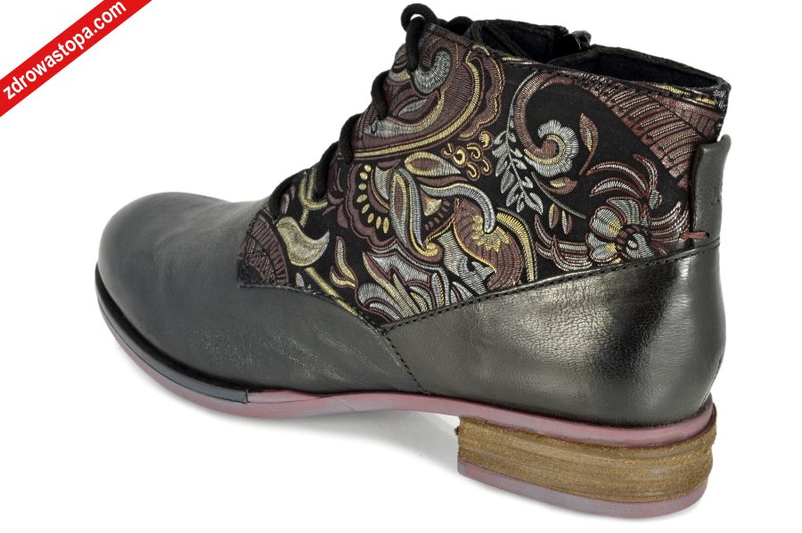 Dodatkowe informacje: Łatwa wsuwalność dzięki zapięciu na suwak, sznurówki pozwalają na idealne dopasowanie do stopy. Bardzo miękka skóra, wysokość obcasu 30 mm. Wyjmowana miękka, skórzana wkładka. Spody lekkie i antypoślizgowe.