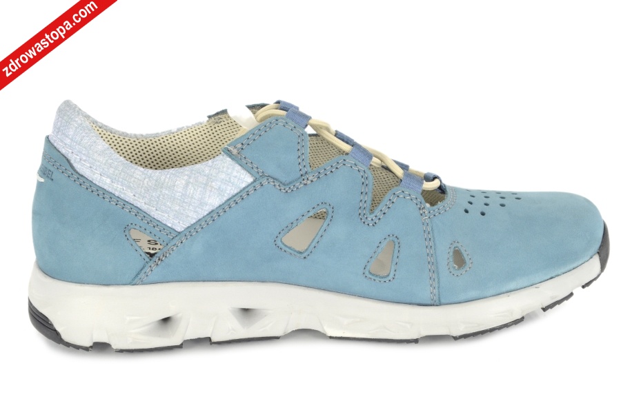 Dodatkowe informacje: bardzo lekkie i elastyczne, dziurki z przodu i boku dobrze wentylują wnętrze obuwia. Gumka z ściągaczem elastycznie dopasowuje obuwie do stopy Miękka, profilowana wkładka wykonana ze skóry.