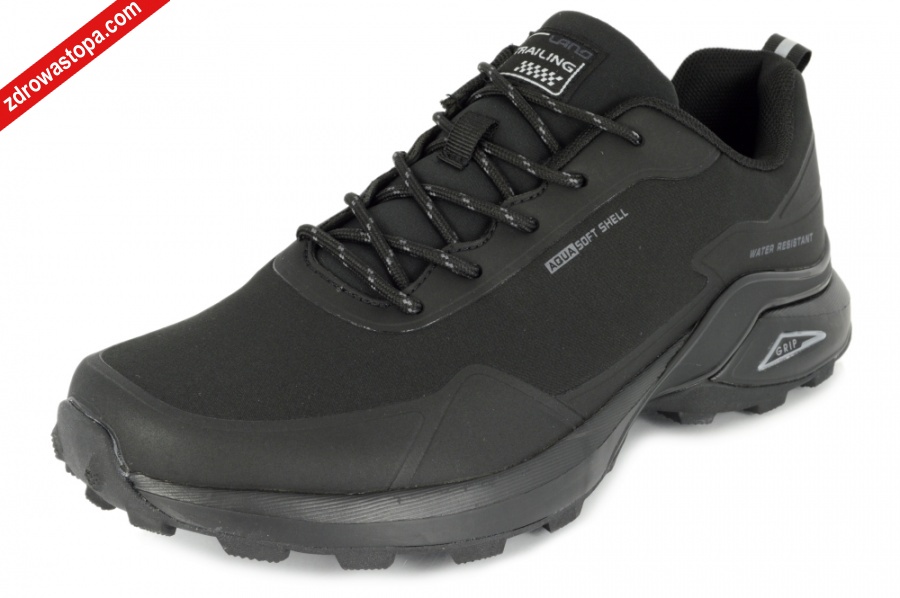 Dodatkowe informacje: obuwie sznurowane, lekkie i elastyczne. Spody traperowe. Materiał AQUA SOFT SHELL oraz klejone połączenie przyszwy z podeszwą zapewniają: