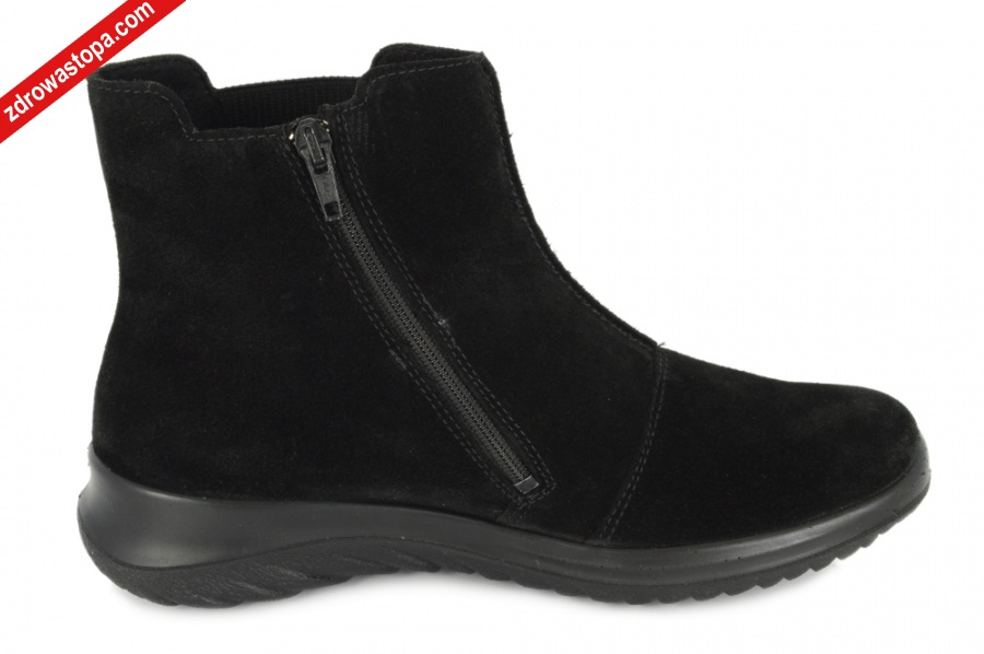 Dodatkowe informacje: Suwak z boku ułatwiający zakładanie, szeroka gumka z boku dopasowuje obuwie do stopy, wykonane z miękkiej skóry zamszowej. Miękka wkładka z filcu. Spody lekkie, amortyzujące drgania, nieślizgające się.