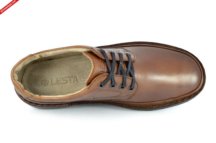Dodatkowe informacje: półbuty męskie sznurowane, wykonane z bardzo miękkiej skóry licowej, wkładka skórzana, środek cały ze skóry plus materiał obuwniczy w przedniej części buta.