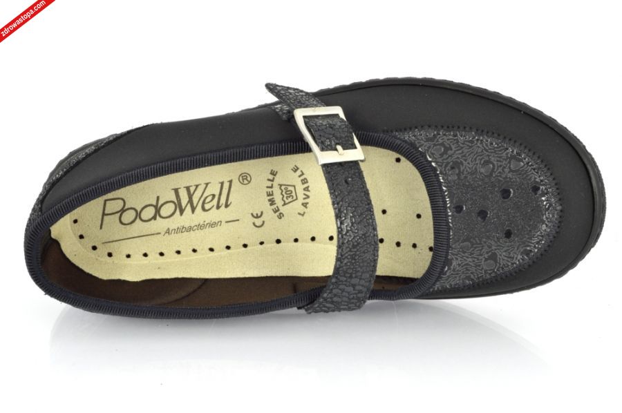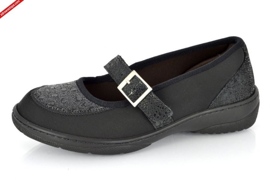 Dodatkowe informacje: obuwie zapinane na rzepę, poszerzona tęgość "K", łatwa wzuwalność. Wysokość klinu 20 mm.