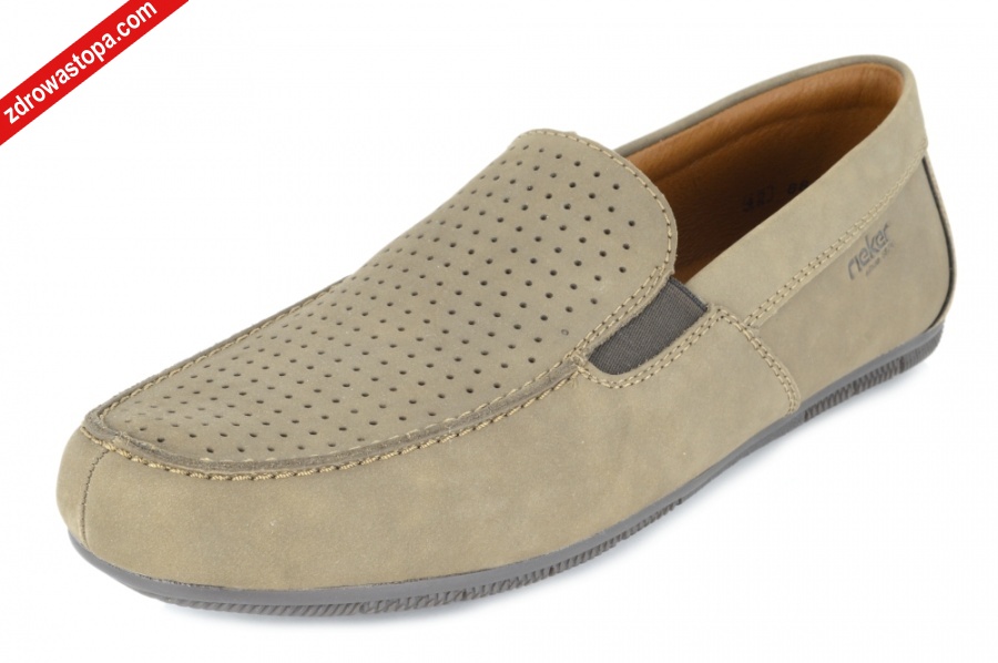 Dodatkowe informacje: Obuwie wsuwane, dobre dopasowanie do stopy zapewniają dwie gumki na podbiciu. Wykonane z miękkiej skóry perforowanej dzięki czemu stopy się nie pocą. Wewnątrz wyjmowana wkładka wymiękczona. Spody lekkie, elastyczne, antypoślizgowe.