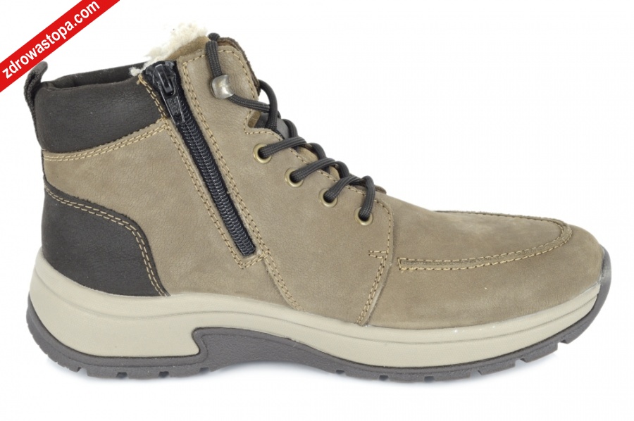 Dodatkowe informacje: sznurowane, suwak z boku ułatwia zakładanie, elastyczne spody absorbujące drgania, antypoślizgowe.