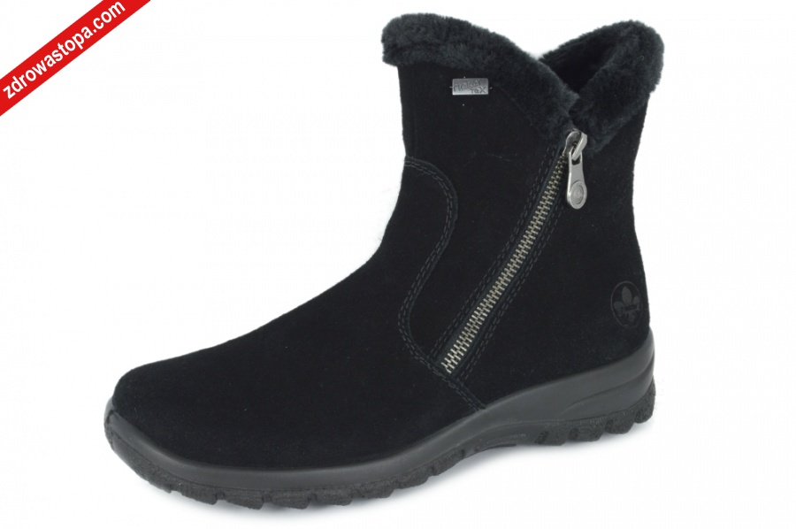 Dodatkowe informacje: obuwie bardzo lekkie, elastyczna podeszwa, absorbująca drgania. Suwaki po bokach ułatwiające zakładanie. Botki na każdą pogodę dzięki membranie RiekerTex, która zapewnia doskonałą ochronę przed zimnem, jest wodoodporna, pozwala stopie oddychać i zapewnia wyjątkową wygodę.