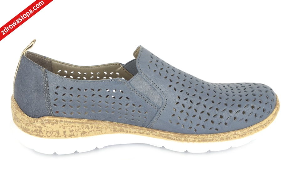 Dodatkowe informacje: Obuwie damskie wykonane z miękkiej skóry, dziurki na całości dobrze wentylują wnętrze obuwia. Miękka, piankowa wkładka memosoft. Spód antypoślizgowy. Bardzo lekkie i elastyczne.