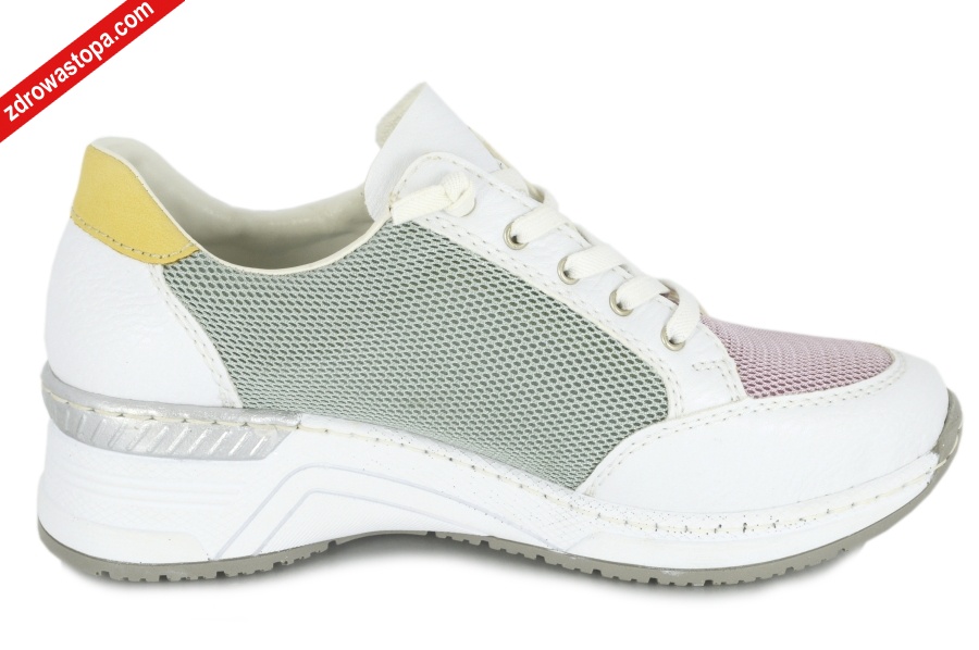 Dodatkowe informacje: Solidna antypoślizgowa podeszwa amortyzuje mikro-wstrząsy. Gumka zastępująca sznurówki dobrze dopasowuje się do sopy, suwak z boku uławia zakładanie. Obuwie lekkie i elastyczne. Wstawki z siateczki zapewniają przewiewność obuwia.