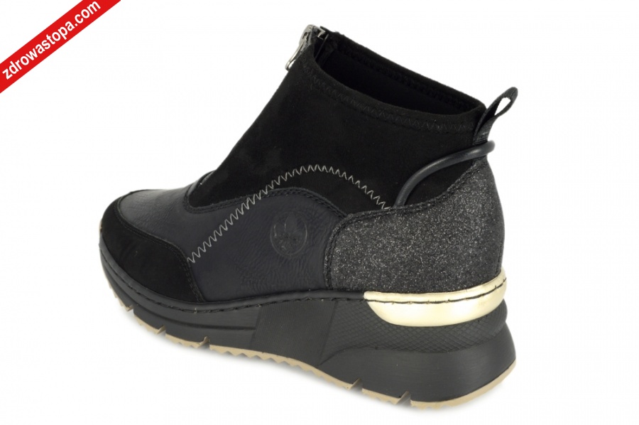 Dodatkowe informacje: Suwak ułatwiające wkładanie, wysokość klinu 60 mm. Górna część wykonana z elastycznego materiału dopasowuje się do kostki. Lekkie, elastyczne i antypoślizgowe podeszwy, miękka filcowa wkładka.