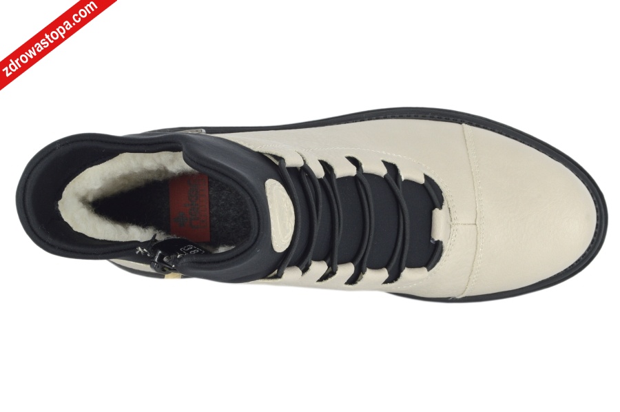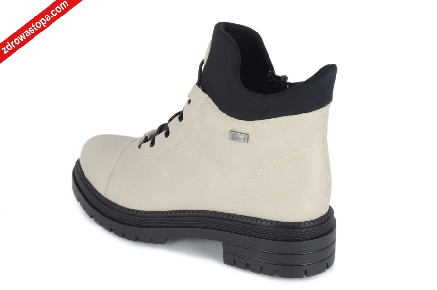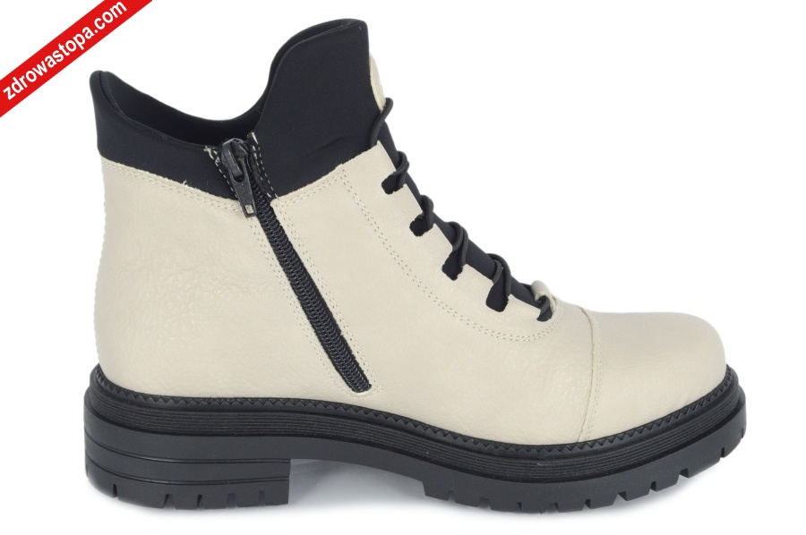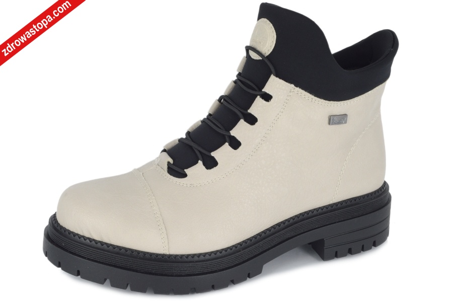 Dodatkowe informacje: Najnowsza kolekcja botka damskiego firmy RIEKER, gumki i streczowy język dobrze dopasowują się do stopy ,model bardzo łatwo wsuwalny dzięki zapięciu na suwak. Miękka wkładka z filcu. Podeszwa botka gruba dobrze absorbująca drgania, nieślizgająca się.
