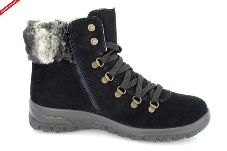 Dodatkowe informacje: miękka skóra, suwak ułatwiający zakładanie, sznurówki zapewniające idealne dopasowanie do stopy, wysokość klinu 40 mm. Żywa owcza wełna i ciepła filcowa wkładka zapewniają idealny komfort cieplny.