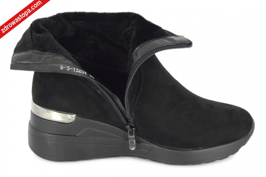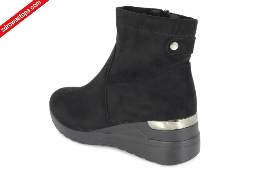 Dodatkowe informacje: Komfortowe botki z suwakiem z boku, wysokość klinu 55mm. W górnej części wszyta gumka dopasowująca się do kostki. Spody lekkie i elastyczne.
