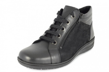 Dodatkowe informacje: Sznurówki pozwalają na idealne dopasowanie do stopy, suwak z boku ułatwia zakładanie. Wyjmowana filcowa wkładka profilowana. Spody lekkie, elastyczne, antypoślizgowe.