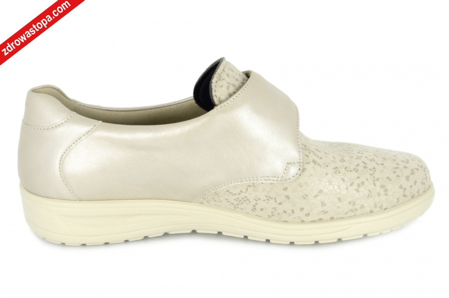 Dodatkowe informacje: Zapięcie na rzepę zapewnia dobre dopasowanie do stopy. Przednia część wykonana z dopasowującego się materiału. Wysokość podwyższenia pięty 26mm. Wyjmowana wkładka. Lekkie i elastyczne spody.