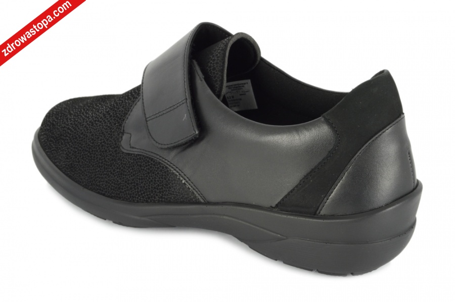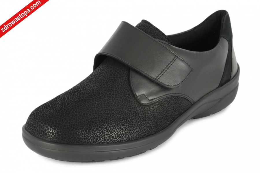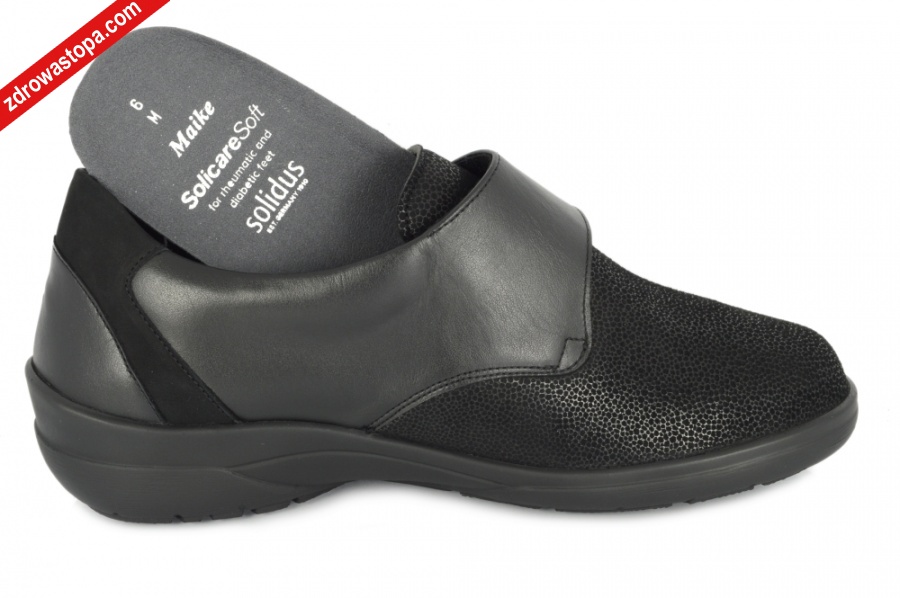 Dodatkowe informacje: Zapięcie na rzepe dobrze utrzymuje obuwie na stopie . Wykonane z bardzo miękkiej skóry oraz materiału strechowego w przedniej części, który dopasowuje się i nie uciska problematycznych miejsc na stopach (haluksy, obtarcia). Wysokość klinu 30 mm. Wyjmowane skórzane wkładki z pelotą. Obuwie SOLIDUS jest produkowane z najwyżej jakości skór i materiałów. Produkt NIEMIECKI. Firma SOLIDUS istnieje od 1910 r.