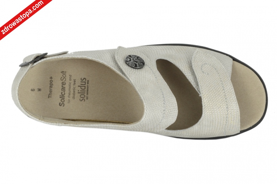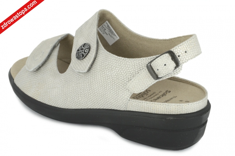 Dodatkowe informacje: Przednie paski zapinane na rzepy oraz tylny pasek zapinany na zatrzask. Wykonane z bardzo miękkiej skóry, wysokość klinu 30 mm, wyjmowane wkładki. Obuwie SOLIDUS jest produkowane z najwyżej jakości skór i materiałów. Produkt NIEMIECKI. Firma SOLIDUS istnieje od 1910 r.