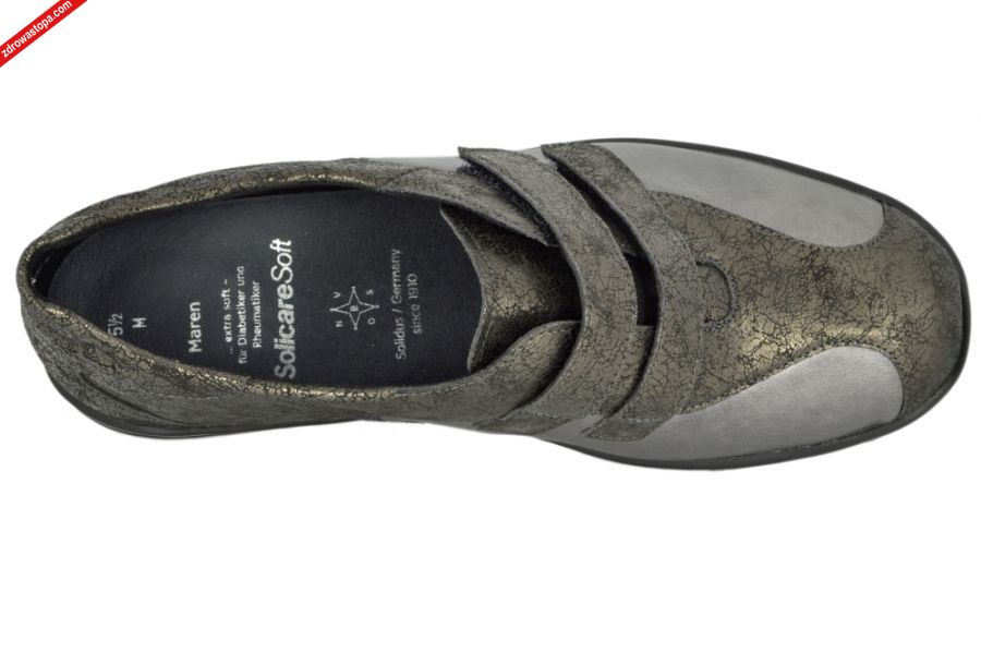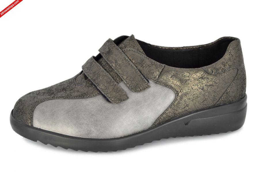 Dodatkowe informacje: Obuwie zapinane na dwie rzepy pozwala na dobre dopasowanie do stopy, po bokach wstawki z elastycznego materiału typu strech który dopasowuje się i nie uciska wrażliwych miejsc na stopach. Wyjmowana wkładka skórzana pozwala na zastąpienie jej swoją np:ortopedyczną. Lekkie, elastyczne i antypoślizgowe spody.