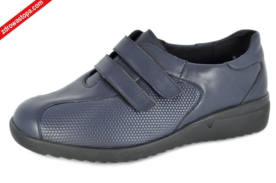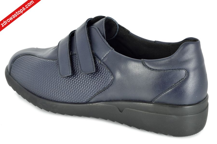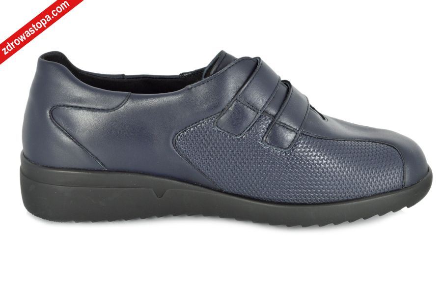 Dodatkowe informacje: Obuwie zapinane na dwie rzepy pozwala na dobre dopasowanie do stopy, po bokach wstawki z elastycznego materiału typu strech który dopasowuje się i nie uciska wrażliwych miejsc na stopach. Wyjmowana wkładka skórzana pozwala na zastąpienie jej swoją np:ortopedyczną. Lekkie, elastyczne i antypoślizgowe spody.