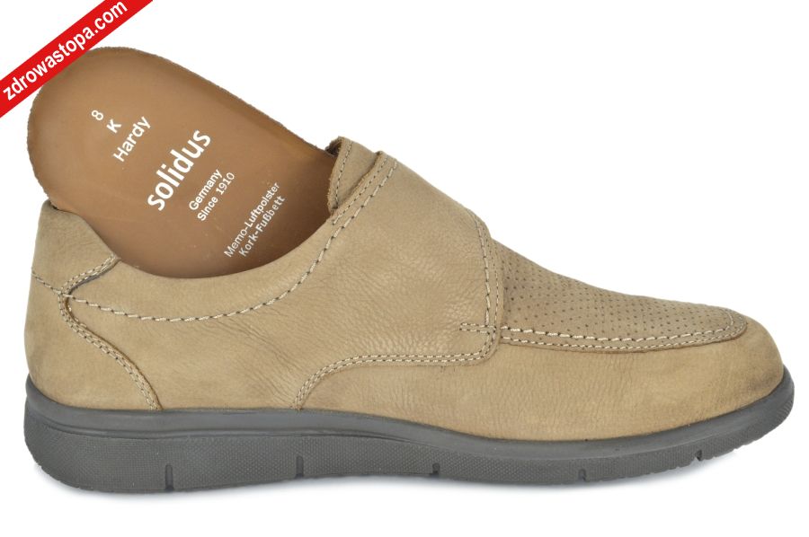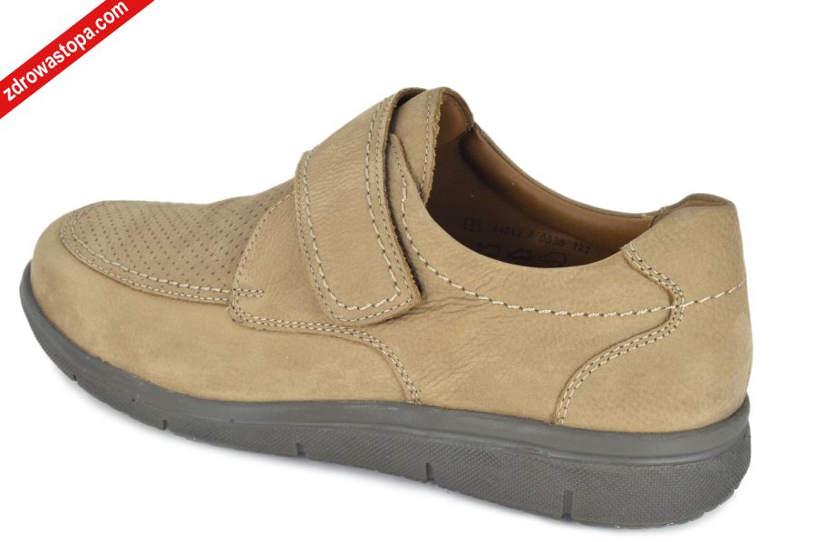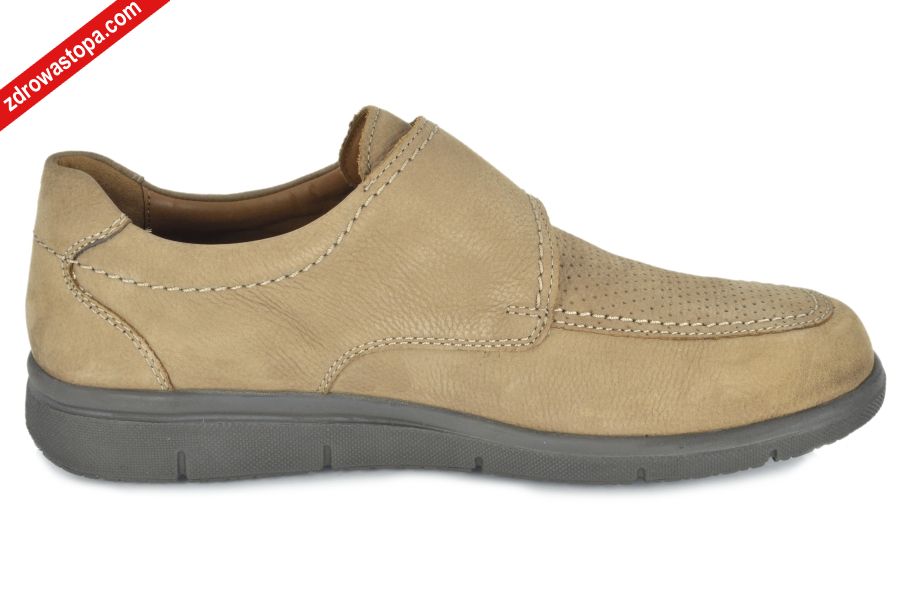 Dodatkowe informacje: Specjalna linia obuwia męskiego o modnym wzornictwie, łatwa wsuwalność, wysokie w palcach. Zapinane na rzepę. Lekkie i elastyczne spody. Wyjmowana wkładka profilowana wykonana z skóry.
