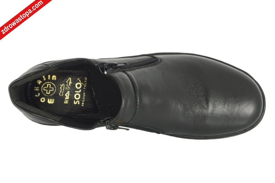 Dodatkowe informacje: klasyczny półbut skórzany firmy SOLO, bardzo miękka skóra, podwyższona tęgość H, zapinane na dwa suwaki ułatwiające zakładanie. Miękka skórzana wkładka, spody elastyczne i antypoślizgowe.