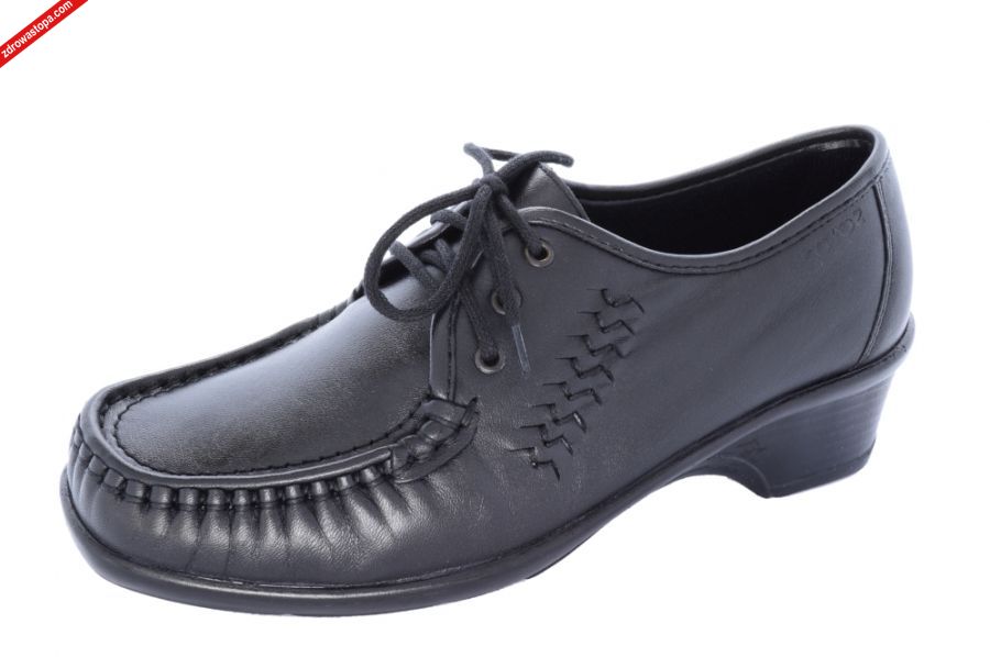 Dodatkowe informacje: klasyczny półbut skórzany firmy SOLO, bardzo miękka skóra w kolorze czarnym o podwyższonej tęgości H, regulowany na sznurówkę, jest to nowy fason na podwyższeniu, wysokość klinu 50 mm,