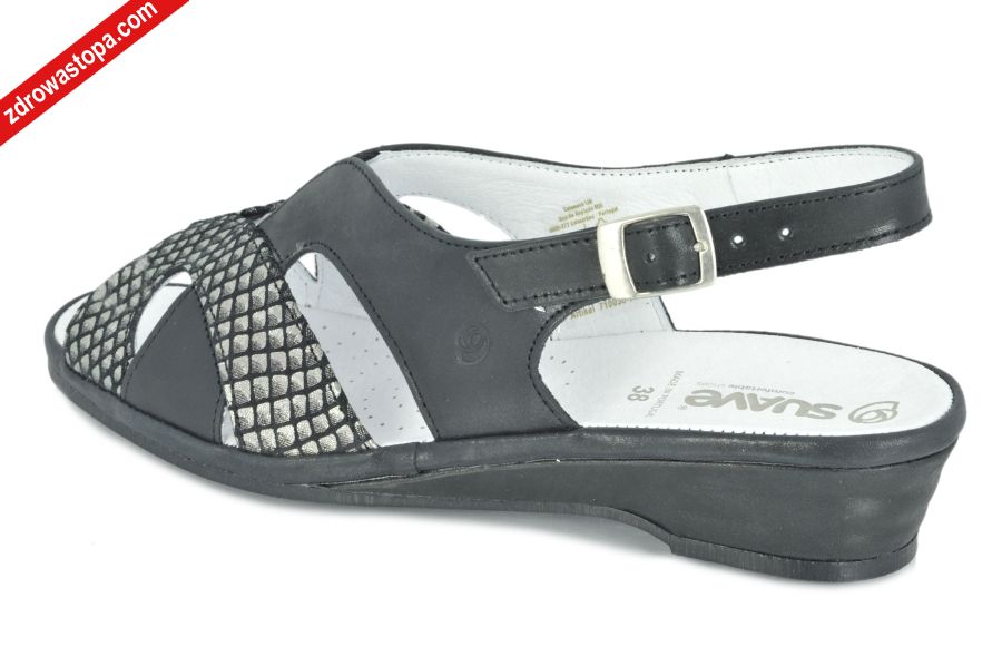 Dodatkowe informacje: klamerka do regulacji obiętości pięty. Gumki na podbiciu dopasowują się do szerokości stopy. Jeden z wygodniejszych sandałów na lato. Skórka bardzo miękka dla stóp wrażliwych. Wysokość klinu 35 mm. Spód antypoślizgowy.