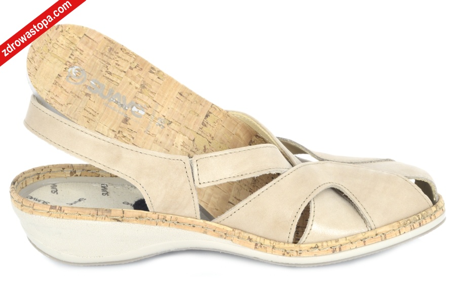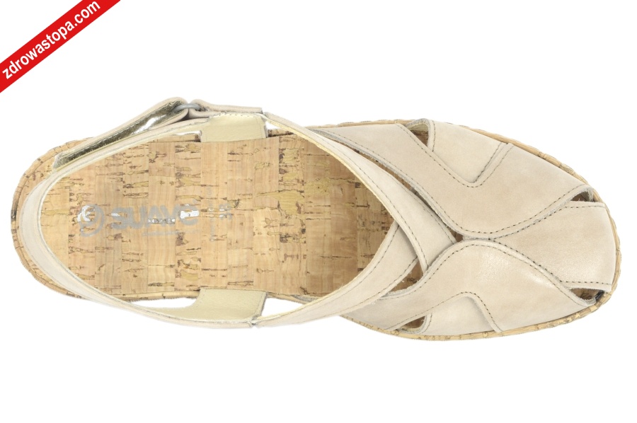 Dodatkowe informacje: Zakryte palce. Skórka bardzo miękka dla stóp wrażliwych. Zapinane na rzepę. Wysokość obcasa 30 mm. Wkładka korkowa, wyjmowana. W poszerzonej tęgości H. Spody bardzo lekkie i elastyczne, antypoślizgowe.