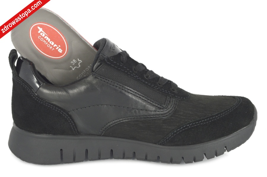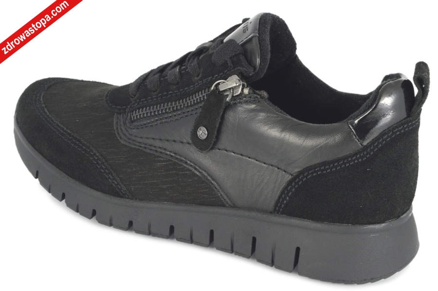 Dodatkowe informacje: Obuwie sznurowane, suwak z boku ułatwia zakładanie, wykonane z miękkiej skóry naturalnej a w przedniej części z rozciągliwego materiału strech który nie uciska na wrażliwe miejsca. Bardzo lekkie, posiadające wyjmowaną wkładkę, elastyczne spody (mały koturn) i antypoślizgową podeszwę.