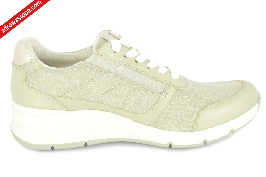 Dodatkowe informacje: Obuwie sznurowane, suwak z boku ułatwia zakładanie, wykonane z miękkiej skóry naturalnej a w przedniej części z rozciągliwego materiału strech który nie uciska na wrażliwe miejsca. Bardzo lekkie, posiadające wyjmowaną wkładkę, elastyczne spody (mały koturn) i antypoślizgową podeszwę.