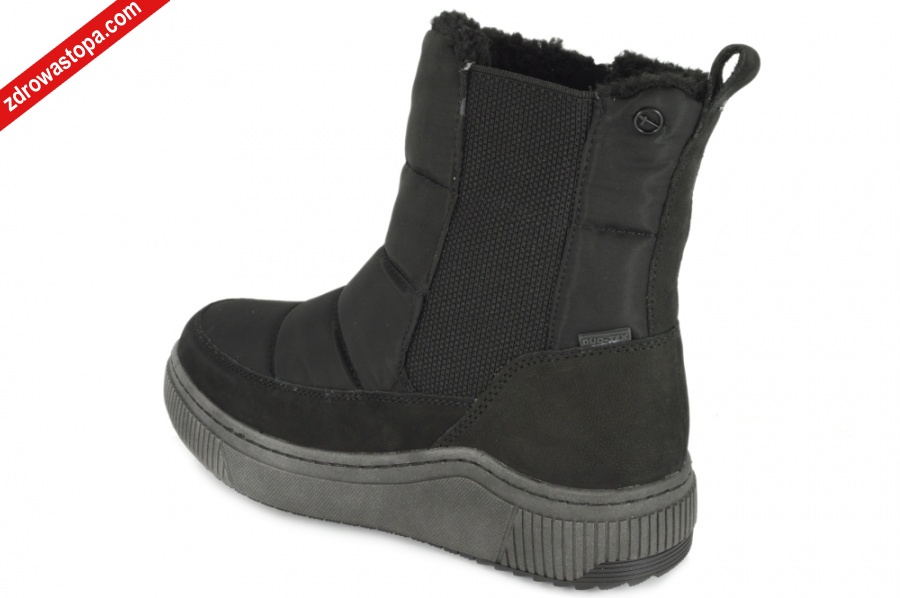 Dodatkowe informacje: obuwie zapinane na suwak, szeroka gumka z boku dopasowuje się do stopy, ocieplane, posiada nowoczesny fason. Spody absorbują drgania i dobrze izolują stopę od zimnej powierzchni. Wyjmowane miękkie wkładki. Podeszwa poszerzona w palcach i bardzo elastyczna, nie ślizgająca się.