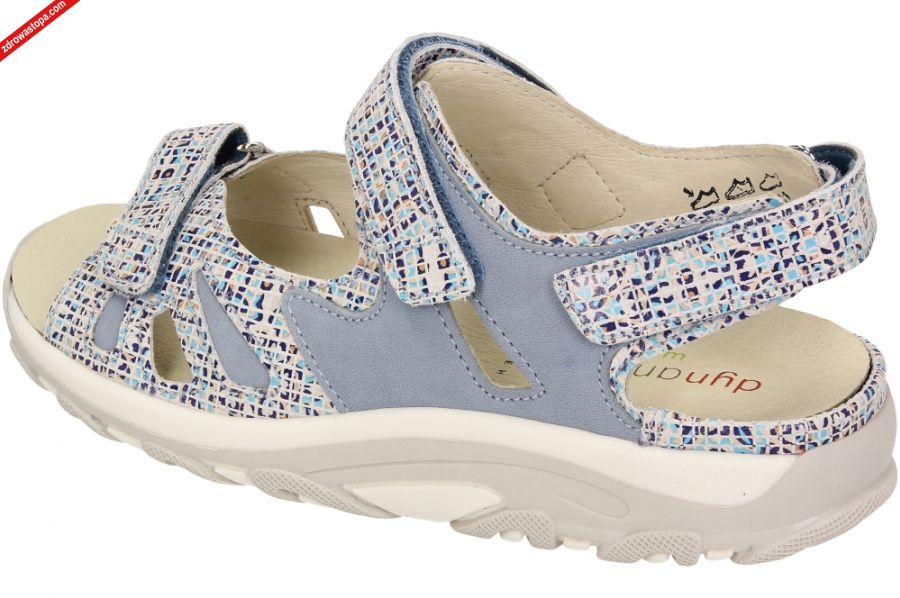Dodatkowe informacje: wygodne, regulowane na trzy rzepy, lekka antypoślizgowa podeszwa, mogą być stosowane przez osoby z tzw. "zespołem stopy cukrzycowej”. Spełnią oczekiwania najbardziej wymagających odbiorców. Wkładka wyjmowana. Sandał typu "dynamic" ma bardzo dobrze wyprofilowaną podeszwę.