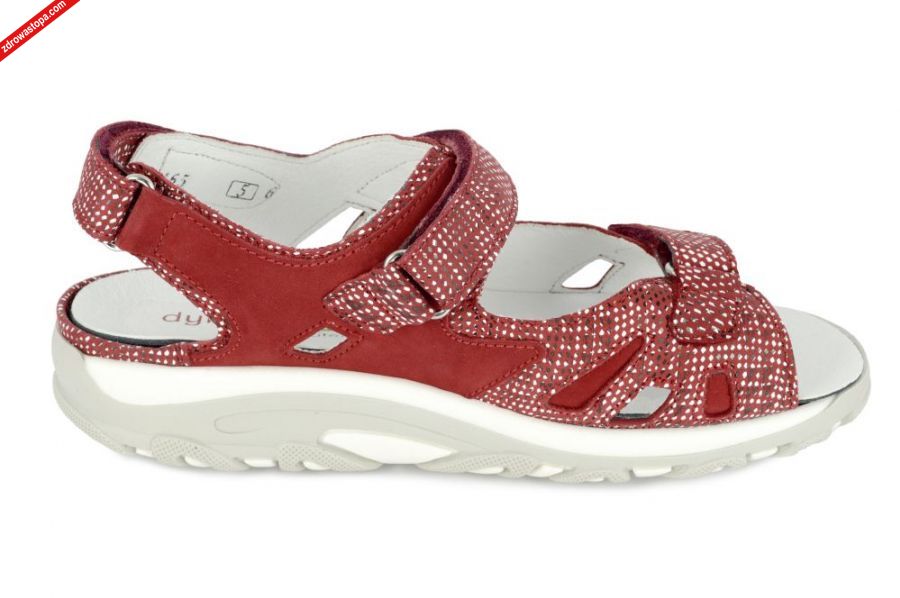 Dodatkowe informacje: wygodne, regulowane na trzy rzepy, lekka antypoślizgowa podeszwa, mogą być stosowane przez osoby z tzw. "zespołem stopy cukrzycowej”. Spełnią oczekiwania najbardziej wymagających odbiorców. Wkładka wyjmowana. Sandał typu "dynamic" ma bardzo dobrze wyprofilowaną podeszwę.