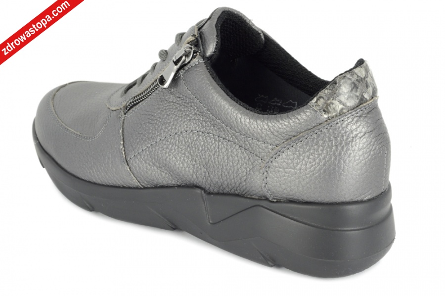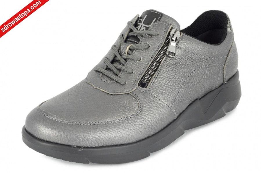 Dodatkowe informacje: Wyjmowana wkładka daje możliwość wymiany na własną wkładkę ortopedyczną. Solidna antypoślizgowa podeszwa amortyzuje mikro-wstrząsy. Sznurówki pozwalają na idealne dopasowanie do stopy, suwak z boku umożliwiają zakładanie bez rozsznurowywania. Obuwie lekkie i elastyczne.