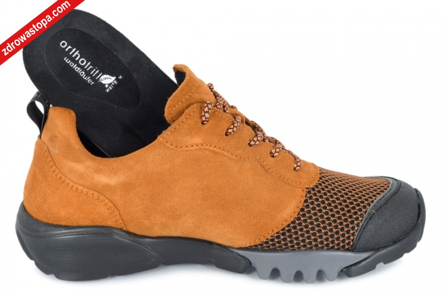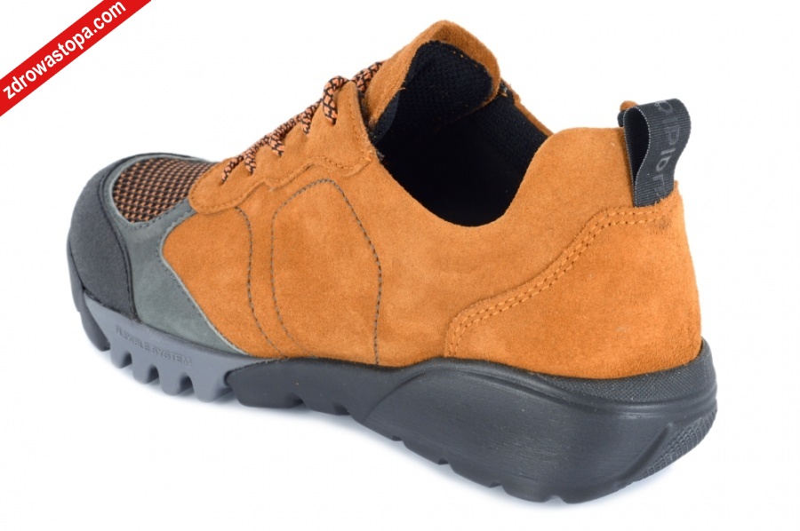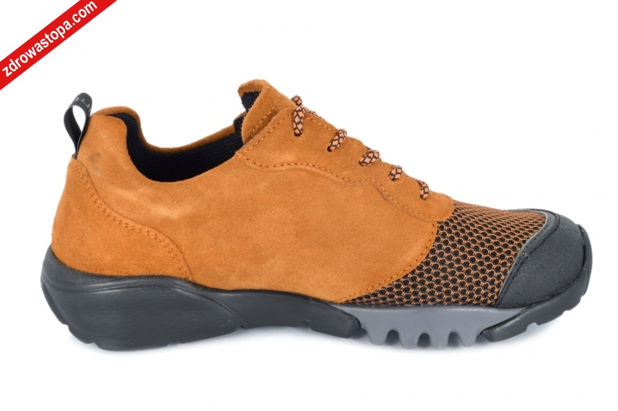 Dodatkowe informacje: Obuwie sznurowane. Półbuty są lekkie, siateczka w przedniej części dobrze wentyluje wnętrze obuwia idealne na długie wędrówki czy spacery. Spód traperowy, elastyczny, antypoślizgowy. Wnętrze miękkie, wyprofilowana wyjmowana wkładka.